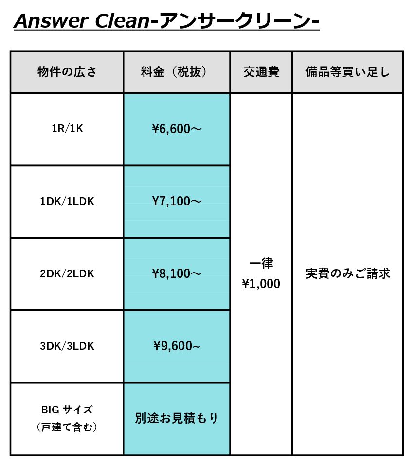◆繁忙期は清掃料金が30%増しとなります。